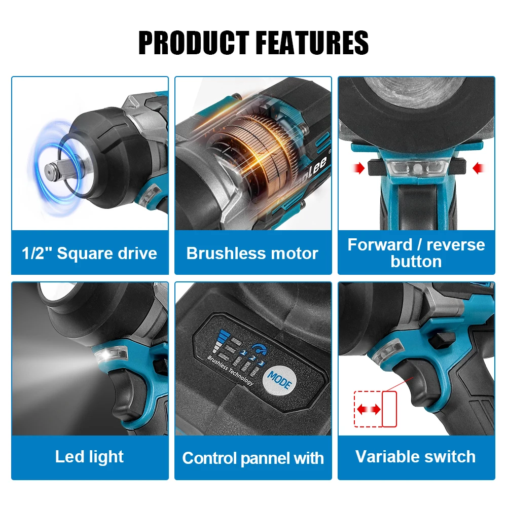 This 3100NM brushless electric impact wrench provides strong torque for fast bolt and nut removal. Because of the brushless motor, energy loss stays low while output remains high. As a result, tightening and loosening large fasteners becomes easier and faster. The 1 2 inch cordless handheld power tool design improves control during heavy duty tasks. Moreover, the KAMOLEE Impact Wrench reduces vibration and heat buildup. Consequently, users complete long work sessions without fatigue. Customers often search for sale or promotion offers, especially when comparing similar brushless electric impact wrench models.1 2 Inch Drive Control