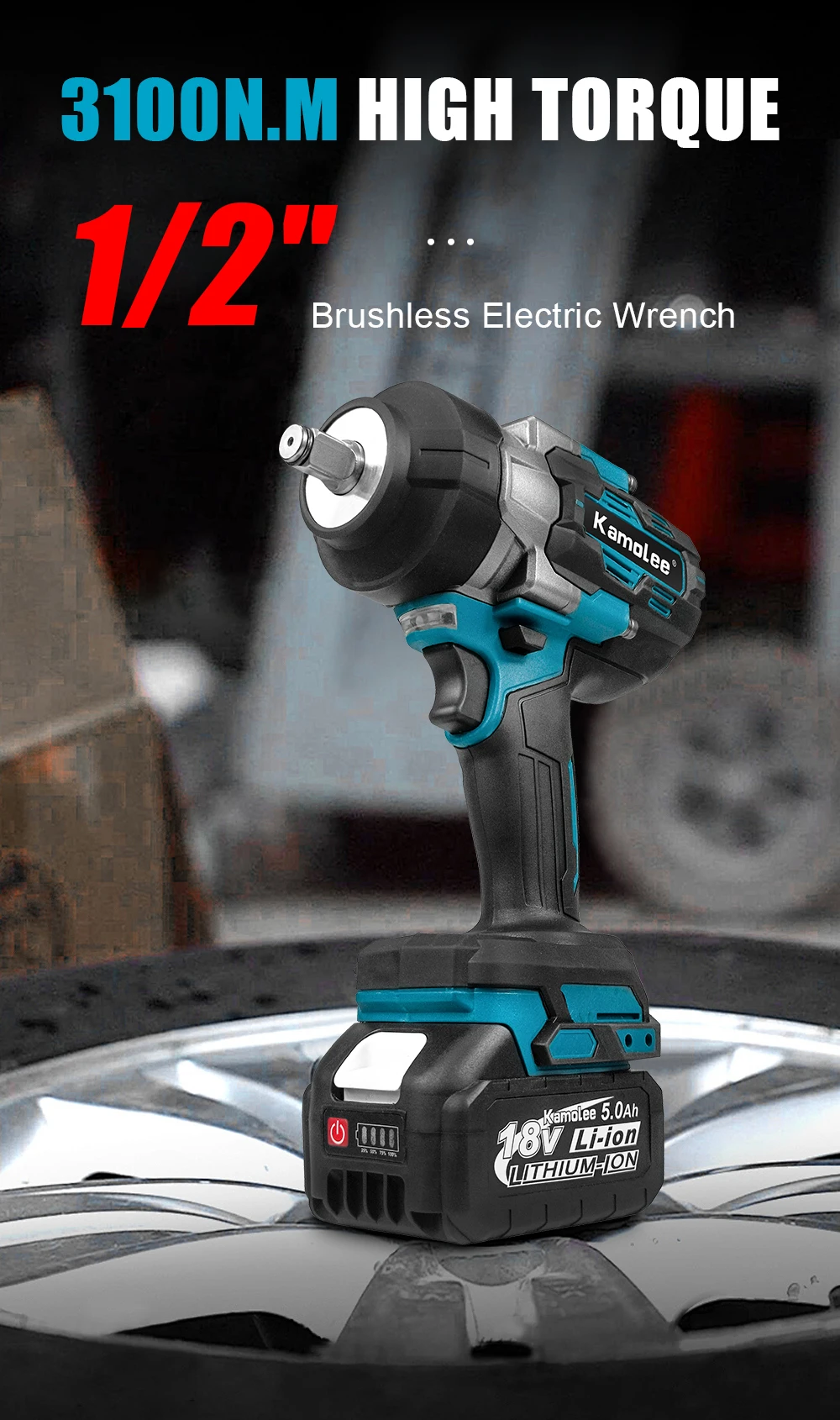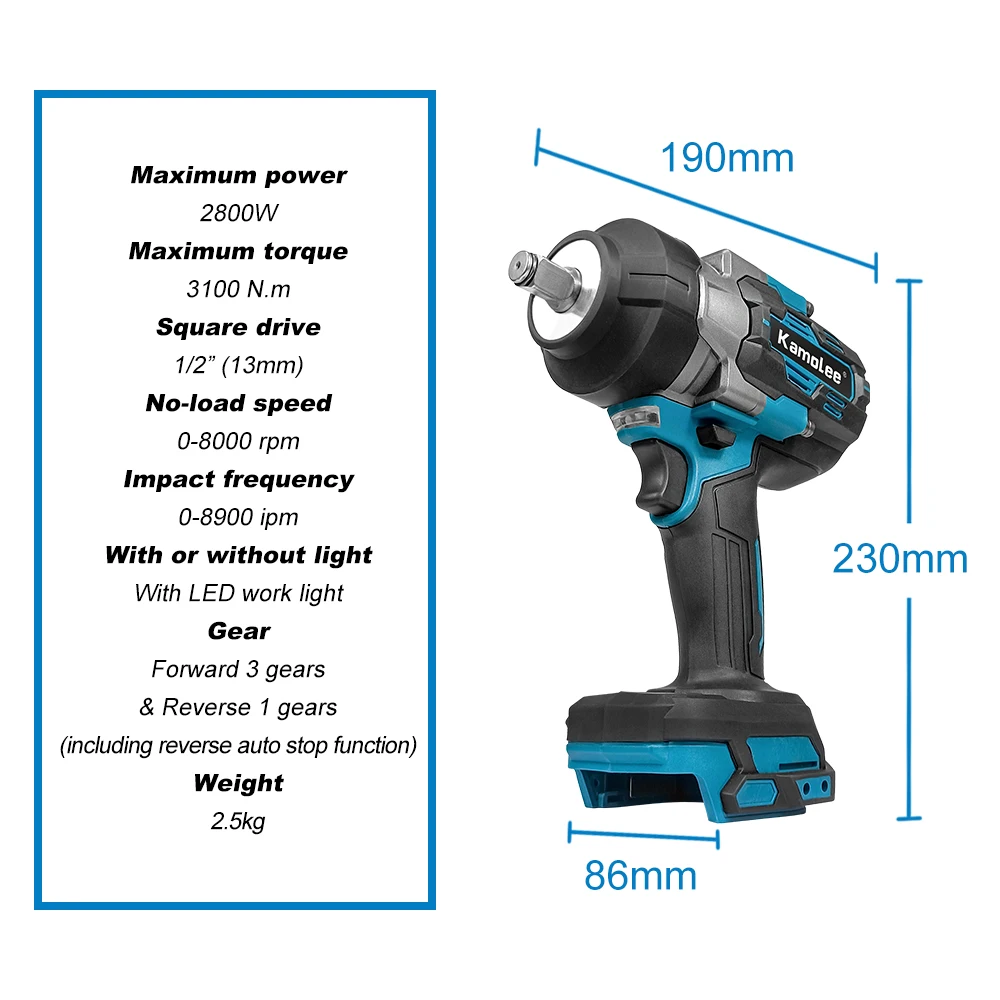 The KAMOLEE Impact Wrench delivers serious performance for demanding users who need strength, speed, and reliability. This electric impact wrench combines a 3100NM output with brushless motor technology, which ensures stable power and longer service life. As a 1 2 inch cordless handheld power tool, it supports heavy duty tasks across automotive, construction, and industrial jobs. The KAMOLEE Impact Wrench works with the 18V 21V battery platform, so users enjoy flexible mobility. Therefore, it fits both professional workshops and home garages in the USA, UK, Canada, Australia, and Europe. Many buyers check price, where to buy, and order online options before choosing this tool.3100NM Brushless Torque